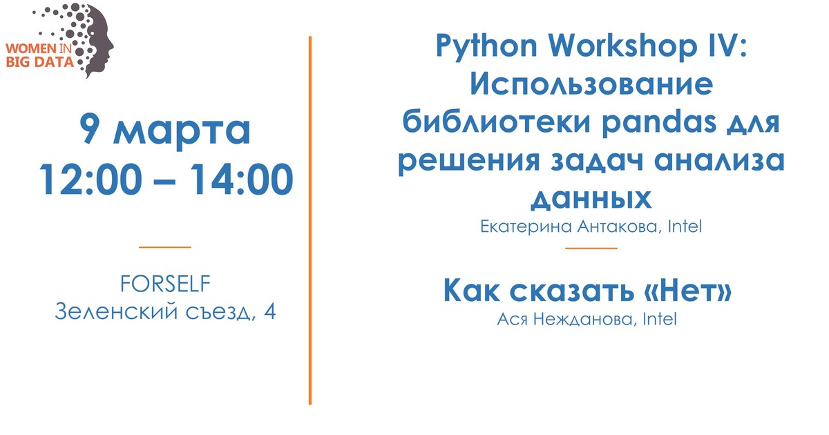 📍 Python Workshop IV: Использование библиотеки pandas для решения задач анализа данных Екатерина Антакова, Intel
