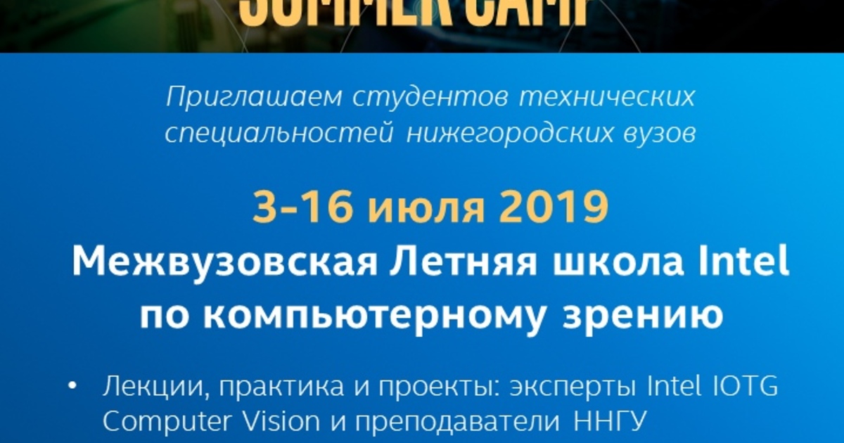 Компания Intel приглашает студентов технических специальностей нижегородских вузов на Межвузовскую Летнюю школу по компьютерному зрению.