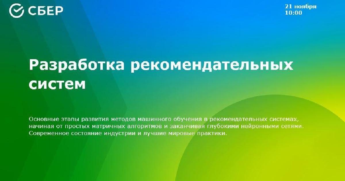 Блок «Технологии» Сбера приглашает нижегородских IT-специалистов на online-встречу, посвященную теме разработки рекомендательных систем.