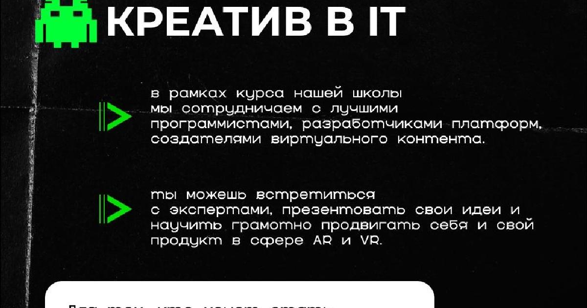 У нас стартовала «Школа креативных индустрий» с направлением «Креатив в IT». Ты можешь рассматривать её как возможность: