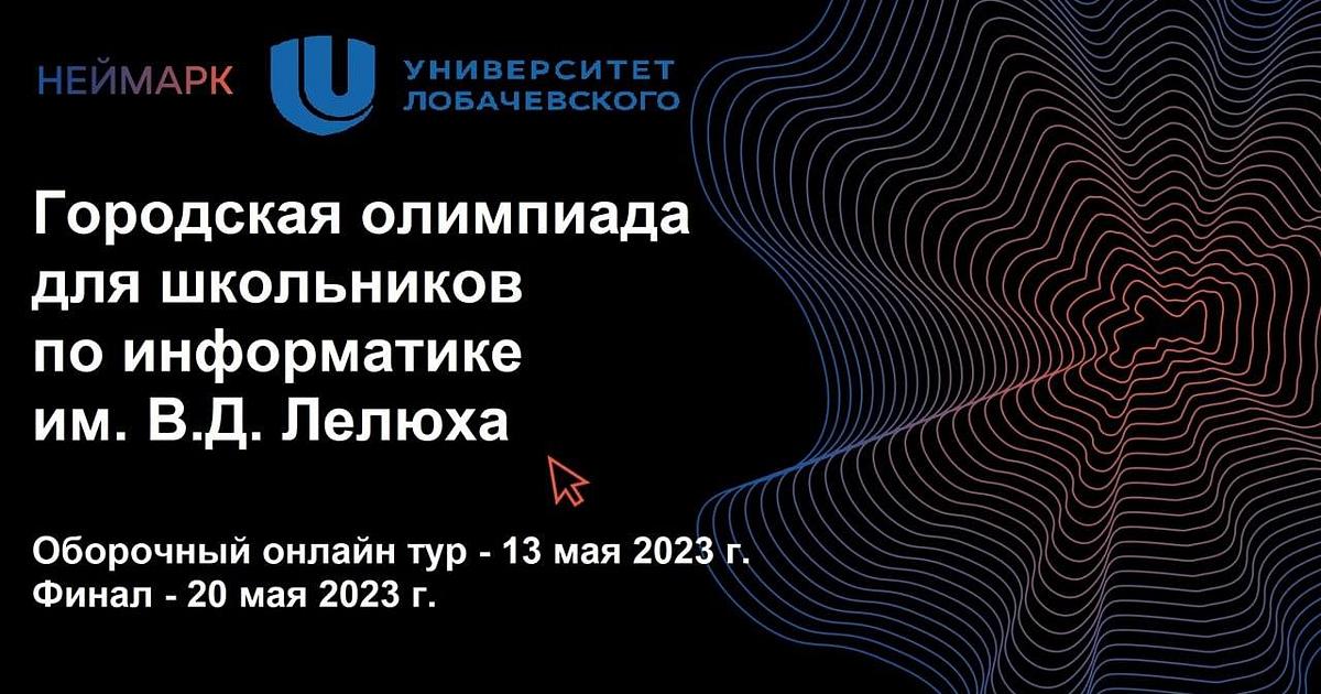 20 мая 2023 года пройдёт финал XIX Нижегородской олимпиады школьников по информатике им. В.Д. Лелюха. Городская олимпиада им. В.Д. Лелюха проводится в Нижнем Новгороде уже в 19-й раз. Организованная легендарным преподавателем Университета Лобачевского Владимиром Денисовичем Лелюхом, а потом подхваченная его учениками Петром Калининым и Алексеем Шмелевым, она стала самым престижным соревнованием, на котором свои силы проверяют лучшие олимпиадники из нижегородских школ.