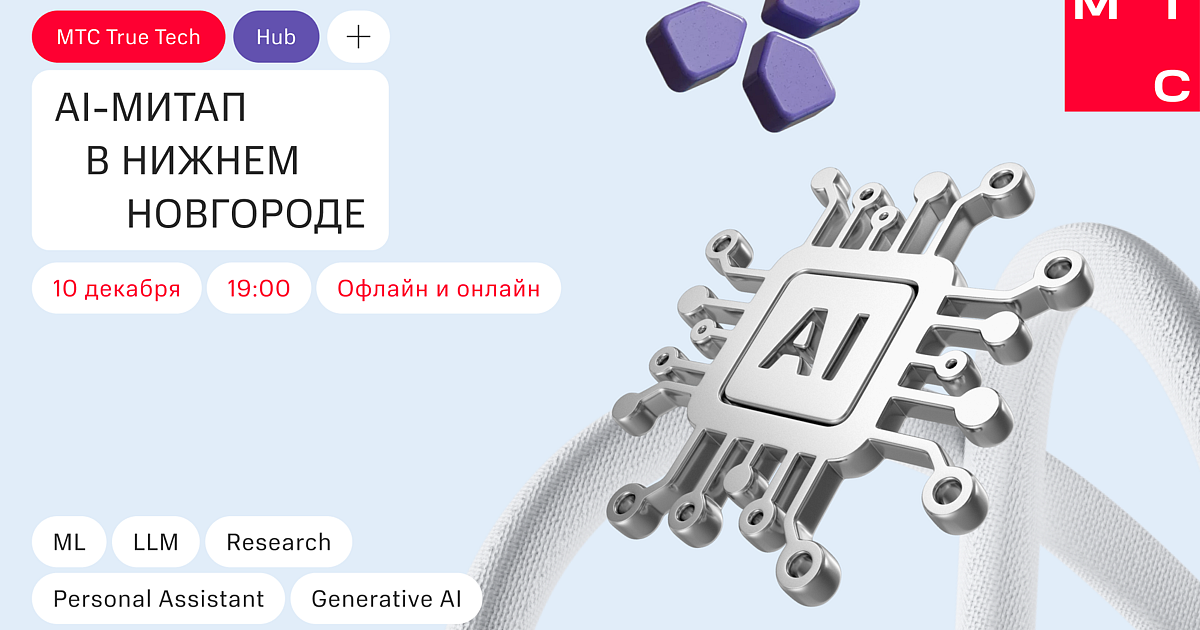 10 декабря приглашаем на AI-митап True Tech Hub в Нижнем Новгороде. Программа мероприятия будет интересна: