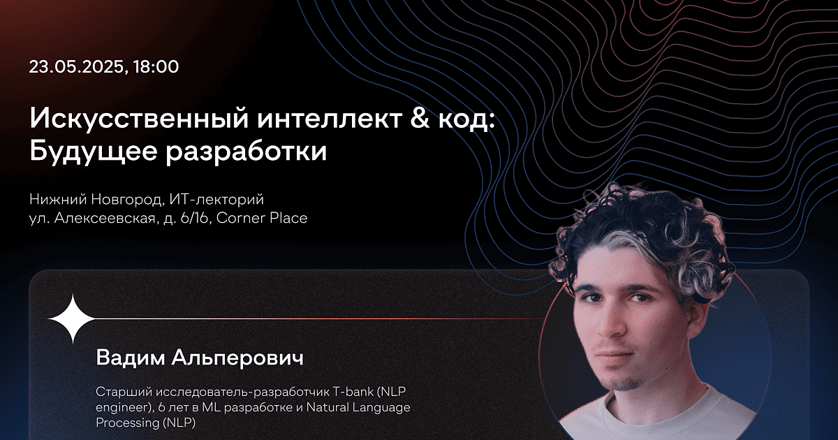 Спикер: Вадим Альперович, старший NLP-инженер T-Bank | 6 лет в ML и NLP, реальный опыт внедрения ИИ в разработку ПО